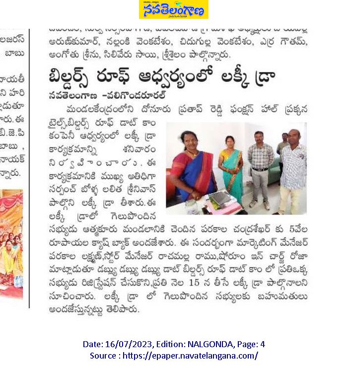 BuildersRoof.com Tiles in Hyderabad, Telangana BuildersRoof.com Tiles in Hyderabad, Telangana Opening BuildersRoof.com Tiles in Hyderabad, Telangana Lucky Draw